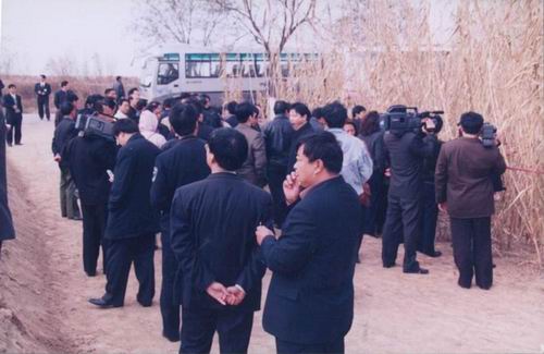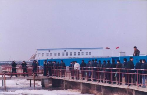 當車隊來到氧化塘,還沒等車停穩,一群野鴨子從塘中凌空飛起,引起代表們的連聲贊嘆。下車后,代表們急急忙忙奔氧化塘生化處理池而去,他們想仔細去看一看,這近似清水的的水質是怎么凈化而來的,一時間,氧化塘生化處理池臺階上站滿了人,記者們手中的照相機燈光閃閃,照個不停,攝像機推拉搖移,不停地轉換視角。