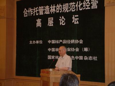 (中國紙網記者 何玲報道)為了進一步貫徹落實《中共中央國務院關于加快林業發展的決定》和國家林業局2004年228號文件《關于合作(托管)造林有關通知》精神,2005年6月5日,由中國林產品經銷協會、中國林業產業協會(籌)、國家林業局綠色中國雜志社聯合主辦的“合作托管造林規范化經營高層論壇”在北京鴻翔大廈隆重舉行。中國科學院院士張新時,國務院參事、中國林科院首席科學家盛煒彤等專家學者及國家林業局、金融和工商等部門的權威人士、合作托管造林的企業代表、投資人代表共100余人出席了論壇,就社會廣泛關注的合作托管造林經營模式所出現的問題及其規范管理進行了熱烈的討論。