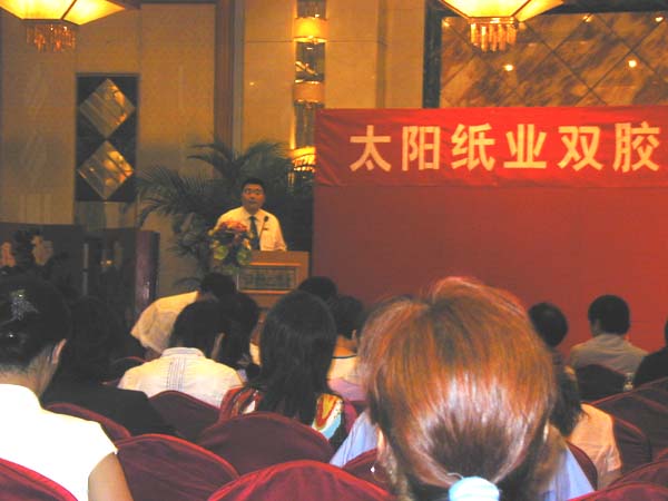 山東太陽紙業股份有限公司“太陽紙業雙膠、銅版產品推介會”今天下午在京舉行。會議在北京西苑飯店一層“燕樂堂”宴會廳召開。來自北京地區的紙張經銷商、印刷廠、出版社的采購負責人和技術負責人參加了本次會議。