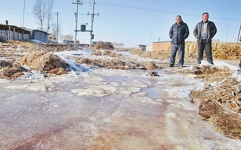 一夜之間,臭味熏人的工業廢水流進村,柴草被浸泡,道路結滿冰,村民不知這樣的日子啥時是個頭