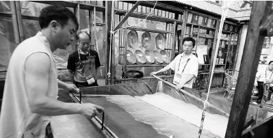 “這紙耐高溫,防蟲蛀,千年不變黃……”15日,在深圳文博會4號館非物質文化遺產展區的江西鉛山展臺,工作人員現場表演用古老而巨大的撈紙機,“生產”有名的“連四紙”,這種紙已經流傳了1200年。