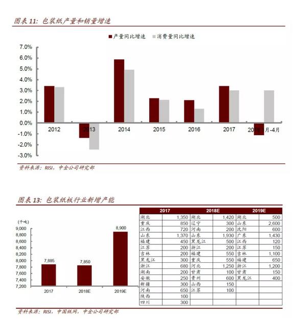 需求正處于淡季,但有改善預期:當前包裝紙需求處于消費淡季,對紙價形成的支撐力度較弱,也是紙價近期下跌的原因。同時下游包裝環節處于“買漲不買跌”的心態,采購熱情在紙價下跌期間也出現回落。但我們認為對包裝紙需求不必過度擔心,隨天氣逐步轉熱,下游飲料、啤酒消費將逐步提升,而數據顯示1-4月啤酒商超終端銷量同比增長約12%,表明本年啤酒整體消費也處于較好水平,預計其后將對包裝紙需求起到提升作用。