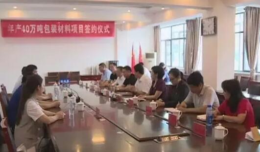 6月19日,河南省三門峽市澠池縣與金裝環(huán)保科技有限公司舉行年產(chǎn)40萬(wàn)噸包裝材料項(xiàng)目簽約儀式。