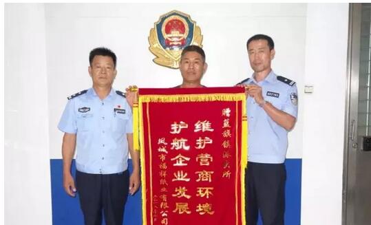7月26日下午,鳳城市福祥紙業有限公司負責人將一面印有“維護營商環境,護航企業發展”的錦旗送到藍旗派出所,對藍旗派出所對企業給予的大力支持和幫助表示感謝。