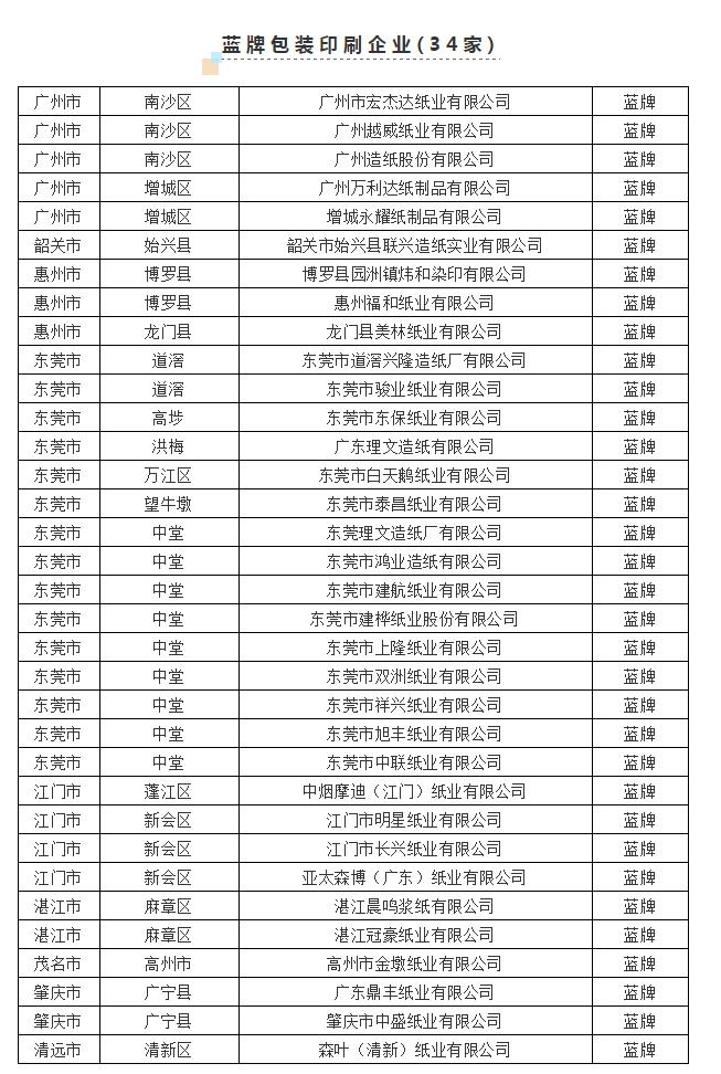 初步統計,在倍受矚目的造紙企業中,共有44家造紙企業上榜。其中“環保不良企業”(紅牌企業)1家、“環保警示企業”(黃牌企業)3家、“環保良好企業”(藍牌企業)34家、“環保誠信企業”(綠牌企業)6家,不參評企業0家。