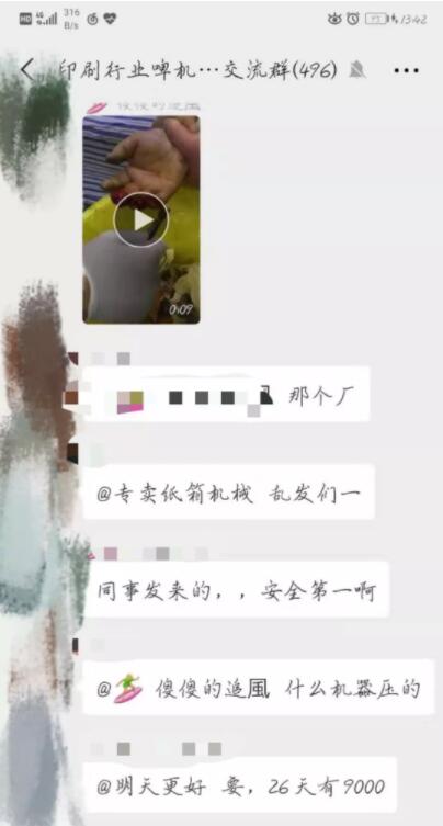 自深圳石巖啤機師傅發生安全事故后,近日,又一段小視頻在各大啤機群轉發!事發地點正在調查中..... 視頻內容不忍直視就不上傳了,網友直呼“太恐怖啦!”