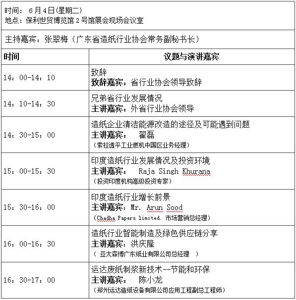 為促進各兄弟省(區)間造紙行業的合作與交流,更好地掌握國內重點造紙省份發展的最新動向,有效的規避風險,迎接機遇,協助企業制定發展方向,推動造紙產業結構轉型升級,走綠色可持續發展道路。 由廣東、山東、江蘇、浙江、河南、福建、四川、廣西、湖南、湖北、江西等十省(區)造紙及相關協會共同主辦的“2019第四屆十省(區)紙業交流會”將于6月4日-5日在琶洲保利世貿博覽館召開。 “2019第四屆十省(區)紙業交流會”將深入剖析我國各重點省份造紙行業發展的現狀與預測,從行業發展角度深入交流煤改氣應對措施、各省區以及海外投資發展形勢、紙漿期貨、食品包裝紙發展趨勢等;從技術進步角度,分享現代化智能工廠建設的成功經驗、節能與環保的廢紙制漿新技術和新產品等。十省(區)交流會為廣大業界同仁搭建碰撞交流,共贏發展的平臺,造福于廣大紙企。 會議時間、地點 ▼報到時間: 6月4日 13:30-14:00 6月5日 08:30-09:30 ▼會議時間 6月4日 14:00-17:00 6月5日 09:30-12:00 ▼會議地點 保利世貿博覽館2號館展會現場會議室 大會議程