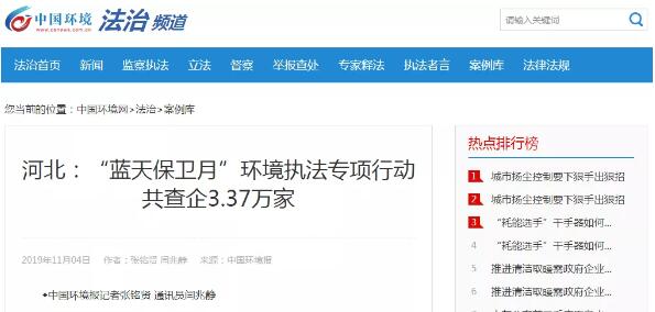 導語:近日,河北省生態(tài)環(huán)境廳就藍天保衛(wèi)月執(zhí)法專項行動發(fā)現(xiàn)的突出環(huán)境問題,進行了集中曝光。行動期間,河北省共出動執(zhí)法人員6.94萬人次,檢查企業(yè)3.37萬家次,全省立案行政處罰環(huán)境違法案件347起,取締違法企業(yè)16家,責令停產(chǎn)、限產(chǎn)企業(yè)26家,移送公安機關(guān)追究責任14人。