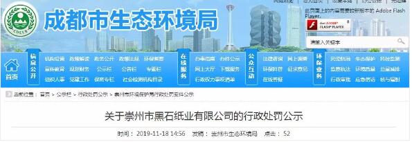 11月18日,四川省成都市生態(tài)環(huán)境局公布《關(guān)于崇州市黑石紙業(yè)有限公司的行政處罰公示》,據(jù)了解,該紙企通過逃避監(jiān)管的方式排放水污染物,崇州市生態(tài)環(huán)境局根據(jù)《中華人民共和國水污染防治法》第八十三條,對該企業(yè)進(jìn)行行政處罰金額15萬元。