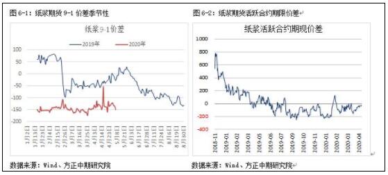 技術上看,紙漿期貨指數自2019年9月開始走出三角形整理形態,成交縮量,結合紙漿期貨價格所處歷史低位的情況,后期是否能向上突破,即形成底部三角形態,值得關注。當前仍需關注指數在4400-4440元支撐,若跌破支撐位,則形態可能打破,需要關注前低4260元支撐位表現。而若能在支撐位企穩,并放量突破三角形上邊界,紙漿有望出現一輪上漲,但幅度也較為有限。 五、價差及套利策略
