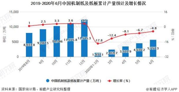 2020年H1中國機制紙及紙板累計產量將近5760萬噸