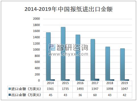 資料來源:中國統計年鑒、智研咨詢整理 智研咨詢發布的《2020-2026年中國報紙行業市場運營模式及發展前景展望報告》數據顯示:2014-2019年中國報紙進出口貿易市場呈貿易逆差態勢,2018年中國報紙進口金額為1098萬美元,出口金額43萬美元;2019年中國報紙進口金額為1047萬美元,出口金額42萬美元, 2014-2019年中國報紙進出口金額
