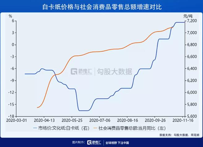 同時,由于灰底白紙的原材料采用再生木漿,對于國外進口廢紙依賴較大。而我國禁廢令將于2021年起正式實施,這代表著2020年約600萬噸的廢紙進口將直接在明年清零,灰底白紙的原材料缺口將使其成本進一步提升,帶來漲價。 目前,白卡紙出廠價已提升至7000元/噸附近,但并未達到歷史高點。預計在2021年白卡紙紙價仍有上漲空間,并維持高位運行。 無論是原紙還是紙板,歲末年尾希望總體保持價格穩定,一來保持行業合理利潤;二來不給紙箱終端用戶年度價格調整下跌理由,進而維持原紙、紙板、紙箱整體產業鏈利益。