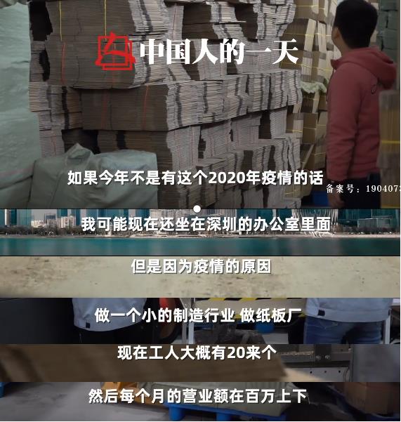80%的紙箱廠活不過5年 疫情前后,“程序員”張會武經歷了人生的幾個大事件:三十而立、結婚、買房、失業…直到2020年9月,張會武揣上幾十萬的積蓄,只身來到義烏,當起了紙箱廠的老板。 以這幾十萬積蓄為起點,張會武開始了自己的紙箱創業之路。從廠子剛開始投產時,技工沒到位,自己自學成才開槽機,到如今近20個工人、每月銷售額上百萬,紙箱廠的生意在走向正軌,張會武在這個行業中基本站穩了腳跟。