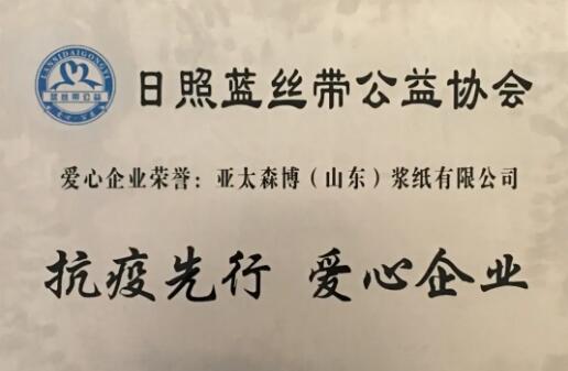 3月30日,在日照藍(lán)絲帶公益協(xié)會(huì)2020年度表彰大會(huì)上,公司被授予“愛心企業(yè)”榮譽(yù)稱號(hào)。