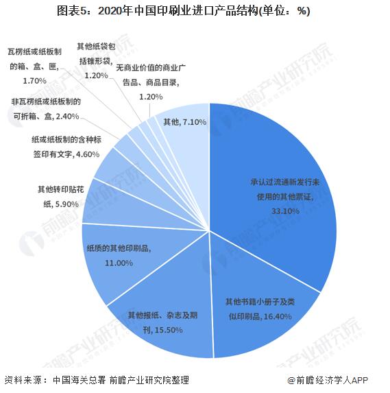 2020年國內(nèi)印刷品進(jìn)口25.16億美元。從進(jìn)出口結(jié)構(gòu)看,2020年國內(nèi)印刷品進(jìn)口,出版物印刷品、包裝印刷品和商業(yè)印刷品進(jìn)口占印刷品進(jìn)口總值的比重分別為,33%、6%和61%。商業(yè)印刷品和出版物印刷品是國內(nèi)印刷品進(jìn)口的主要商品。