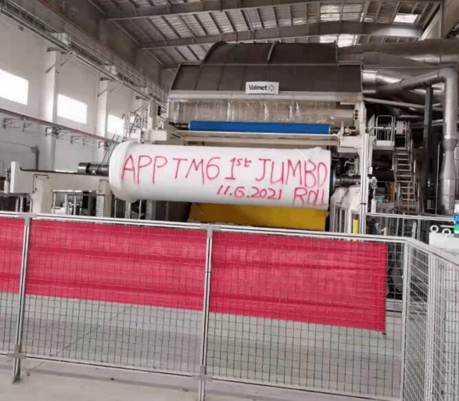 近日,金紅葉紙業(湖北)有限公司三期項目的TM6衛生紙機順利開機出紙。該紙機幅寬5600mm,設計車速2000m/min,年產能為6萬t,紙機供應商為維美德。三期項目的另一臺紙機TM5也已安裝完成,近期將開機投產。