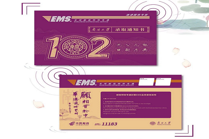 心中有種子,眼里有光芒, 拿過接力棒,一起挑大梁!  南開大學的錄取通知書 封面的顏色采用了青紫色 搭配金黃色  因為今年是南開大學102周年的校慶 所以在封面上也設計了102的字眼