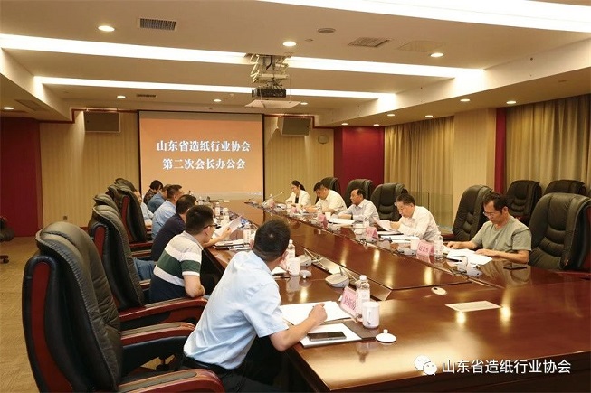 2021年8月31日,山東省造紙行業(yè)協(xié)會在太陽紙業(yè)召開第二次會長辦公會議,李洪信會長主持會議。會議聽取了協(xié)會下半年的主要工作和活動安排;審議了協(xié)會兩項管理制度;聽取了齊魯工業(yè)大學(xué)生物基材料現(xiàn)代產(chǎn)業(yè)學(xué)院的籌建情況。