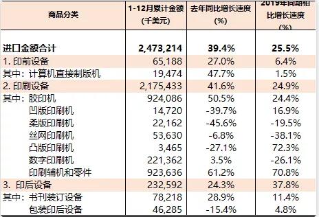 同期,國內(nèi)印刷器材進出口貿(mào)易順差4.41億美元(同比增長107.9%、較2019年同期增長31.9%)。 本期觀察 總結(jié): 2021年1-12月國內(nèi)印刷產(chǎn)業(yè)相關(guān)商品進出口總值達242.50億美元。同期,印刷品、印刷裝備、印刷器材三大類商品進出口均實現(xiàn)穩(wěn)定持續(xù)增長,三類商品的進口和出口規(guī)模不僅超越2020年同期水平,且較2019年同期也有較大幅度增長: 與2020年同期相比,國內(nèi)印刷品進口增長8.3%、出口增長19.1%;印刷裝備進口增長39.4%、出口增長30.6%;印刷器材進口增長12.9%、出口增長43.4%; 與2019年同期相比,其中,國內(nèi)印刷品進口增長0.6%、出口增長16.1%;印刷裝備進口增長25.5%、出口增長17.6%;印刷器材進口增長13.1%、出口增長21.1%。 與2020年同期相比,2021年1-12月國內(nèi)印刷品、印刷裝備、印刷器材進口、出口增長較快的前五位商品類別如下: 進口:其他出版物印刷品(+226.3%)、印刷輔機和零件(+61.2%)、其他紙質(zhì)包裝容器(+58.7%)、膠印機(+50.5%)、計算機直接制版機(+47.7%); 出口:印刷輔機和零件(+76.6%)、票證類印刷品(+63.4%)、CTP膠印版材(+49.7%)、其他印刷油墨(+38.7%)、水性噴墨墨水/PS膠印版材(+38.2%)。 同期,國內(nèi)印刷品、印刷裝備、印刷器材進出口相對萎縮的商品類別如下: 進口:柔版印刷機(-45.6%)、 凹版印刷機(-39.7%)、期刊雜志類印刷品(-29.9%)、凸版印刷機(-27.1%)、兒童圖畫書類印刷品(-17.4%)、包裝印后設(shè)備(-15.4%); 出口:辦公類印刷品(-6.0%)。 有關(guān)2021年國內(nèi)印刷產(chǎn)業(yè)進出口商品的規(guī)模、結(jié)構(gòu)、分布的特點、與以往年份相比國內(nèi)印刷產(chǎn)業(yè)進出口商品的規(guī)模、結(jié)構(gòu)、分布的變化、相關(guān)商品子項進出口數(shù)量和價格的詳細信息,近期推出的《2021年國內(nèi)印刷產(chǎn)業(yè)相關(guān)產(chǎn)品進出口年度報告》將進行深入分析探討。同時,2022年1月1日開始實施的《區(qū)域全面經(jīng)濟伙伴關(guān)系協(xié)定》(RCEP)對國內(nèi)印刷產(chǎn)業(yè)進出口商品的影響也將在年度報告中有專題討論。敬請關(guān)注!