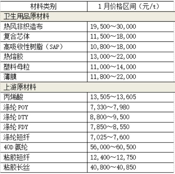 2022年1月衛(wèi)生用品原材料價(jià)格情況