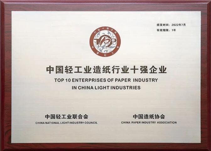 近期,中國造紙協(xié)會公布了《關(guān)于表彰“2021年度中國輕工業(yè)造紙行業(yè)十強企業(yè)”的決定》,太陽紙業(yè)控股股東山東太陽控股集團(tuán)有限公司榮獲“2021年度中國輕工業(yè)造紙行業(yè)十強企業(yè)”稱號,彰顯了太陽控股在高質(zhì)量發(fā)展之路上奮勇前行的積極成效。