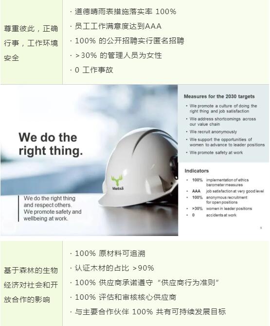 這些目標側重于最重要的可持續發展問題,涵蓋了芬林集團的所有業務運營,也會對其供應鏈產生影響。特別是,芬林集團正在努力增加措施,以改善森林的自然生物多樣性和健康生長狀況,以及促進零化石燃料的生產方式。2030年目標所包含的監測指標更加全面,數量超過之前的兩倍。