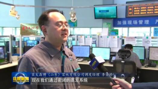 亞太森博(山東)漿紙有限公司調度經理 李金橋:在制漿過程中會產生大量的黒液和副產品,現在我們通過密閉的蒸發系統把黒液濃度提升到80%到83%左右,到我們堿爐系統進行燃燒,產生的大量高壓蒸汽為我們發電,這樣使我們生產過程更加環保,并且降低運行成本。 此外,亞太森博還投資近4億元建成了全球該行業中首家消白及煙氣余熱回用項目,年可節約標煤14.7萬噸,減少煙氣帶水量88.19萬噸、碳排放38.25萬噸,還可以通過收集的余熱為周邊社區居民進行供暖。