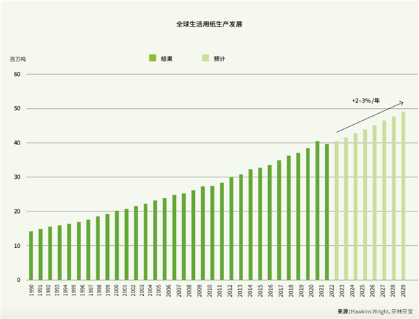 雖然市場仍被經濟不確定性的陰影所籠罩,但潛在趨勢將進一步推動多用途、負責任生產木漿的長期需求。 2022年,在通脹加速、利率上升和俄烏沖突所帶來的負面影響下,全球經濟增長預期有所下降。這對全球木漿市場也有直接和間接的影響。 “木漿市場可能出現短期動蕩。”咨詢公司Brian McClay & Associates(BMA)合伙人John Litvay說。 基于全球經濟增長放緩的預測,BMA下調了對2022年和2023年木漿市場增長的預期。消費增長預計為每年1.7%。 AFRY管理咨詢總監(jiān)Tomi Amberla也認為短期前景比以往更具挑戰(zhàn)性。通貨膨脹、經濟增長放緩和全球政治局勢可能導致木漿需求下降。 “木漿需求每年都在變化。它受總體經濟發(fā)展的影響很大。”他指出。 長期增長穩(wěn)定 不過,專家表示,木漿市場的長期增長前景并未改變。 “我們預計,未來10到20年,木漿需求將以平均每年2.5%的速度增長。”Litvay說。 在去年為芬蘭森林工業(yè)聯(lián)合會進行的一項研究中,AFRY估計,全球木漿市場將以每年1-3%的速度增長,一直持續(xù)到2035年。Amberla表示這個估計仍然成立。 咨詢公司Hawkins Wright總監(jiān)Oliver Lansdell表示,木漿市場增長的一大關鍵驅動力是生活用紙消費量的增長,尤其是在新興市場。大多數生活用紙由商品漿制成。 “長期看來,我們預計生活用紙需求將以每年2%至3%的速度增長。”他估計。 大趨勢支撐需求增長 生活用紙消費量與城市化和消費者購買力等大趨勢緊密相關,而這些趨勢仍在保持增長,并且在新興經濟體中尤其顯著。 “隨著包裝紙板和生活用紙產品的使用量不斷增加,全球大趨勢正在支撐基本木漿需求的增長。這將為長期需求增長打下堅實基礎。當然,不同年份之間還會繼續(xù)存在周期性波動。”Amberla說。 增長型產品類別的一個典型示例是生活用紙制成的衛(wèi)生產品,例如衛(wèi)生紙、擦手紙和手帕紙。 同時,隨著新興經濟體居民生活水平的提高,木漿基紙板和其他包裝材料的需求也在增長。越來越多的消費者開始從雜貨店購買包裝食品,而不再去傳統(tǒng)的市場攤位。 快速增長的在線購物行業(yè)也需要更多包裝材料來運輸產品。