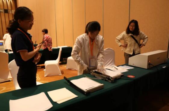 ▲ 筆試現(xiàn)場 5月23日上午,技能操作(現(xiàn)場)在圣德酒店繼續(xù)進行。選手們進行了紙張物理性能檢測(D65亮度、抗張強度)等測試,比賽現(xiàn)場緊張有序,參賽選手熱情高漲,比速度、看工藝、展技能,選手們個個爭分奪秒,表現(xiàn)出超高的專業(yè)技能水平。裁判員同樣一絲不茍,手握計時器,神情專注地看著每位選手的操作,不時在操作臺前駐足評分,認真記錄下每位選手操作過程中的不足,充分體現(xiàn)比賽的公平、公正、公開。