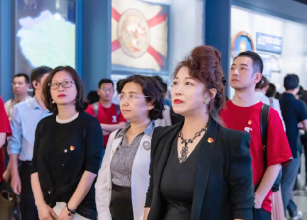 在中共一大紀念館內,金光集團 APP(中國)黨支部書記、副總裁翟京麗,上海市僑聯副主席、機關黨委書記陶勇,江蘇省僑聯黨組成員、副主席兼秘書長張霓,復旦大學發展研究院執行副院長張怡,上海市外辦亞大處黨支部支委、副處長沙柳勇,樹根互聯黨委書記黃路川帶領各支部黨員,跟隨講解員的解說,以中國共產黨人的“初心使命”為主線,以《偉大的開端》為題,通過“前仆后繼、救亡圖存”,“民眾覺醒、主義抉擇”,“早期組織、星火初燃”,“開天辟地、日出東方”,“砥礪前行、光輝歷程”五個板塊,全面系統地了解了中國共產黨的誕生歷程和百年歷史。