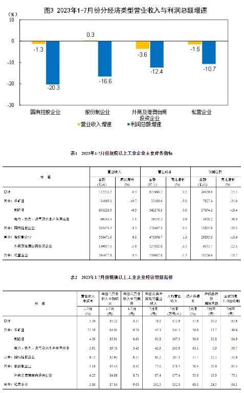 8月27日,國家統計局網站發布2023年1—7月份全國規模以上工業企業利潤情況。數據顯示,1—7月份,全國規模以上工業企業實現利潤總額39439.8億元,同比下降15.5%,降幅比1—6月份收窄1.3個百分點。