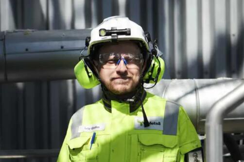 TuomasVainikka “我們已經(jīng)成功利用二次熱來減少乙二醇循環(huán)中蒸汽的用量,這可能有助于我們完全取代蒸汽。這將節(jié)省大量資金! 沒人需要獨(dú)自應(yīng)對挑戰(zhàn),大部分工作都是與合作伙伴公司的同事和專家共同完成的!昂献骱苡幸饬x,成功更能振奮人心。所以,為了解決問題偶爾加班也沒關(guān)系。” 發(fā)電廠維護(hù)的經(jīng)過精心策劃 約策諾木漿廠的堿回收鍋爐令人印象深刻。鍋爐天花板高達(dá)70米,只需一秒鐘就能將150公斤的水變成蒸汽。滿負(fù)荷運(yùn)作時,堿回收鍋爐的渦輪機(jī)每天利用生物能源產(chǎn)生90兆瓦的電力,大約是木漿廠耗電量的兩倍!拔覀儗⒍嘤嗟目稍偕娏斎雵译娋W(wǎng)。”AleksiHeikkilä說。 Heikkilä在約策諾木漿廠的發(fā)電廠擔(dān)任部門工程師,負(fù)責(zé)確保高水平的可靠性和環(huán)境效率。在實(shí)踐中,他的工作主要包括監(jiān)控設(shè)備狀態(tài)以及規(guī)劃和安排維護(hù)工作。“發(fā)電廠的維護(hù)工作通常持續(xù)時間最長,因此需要廣泛仔細(xì)的規(guī)劃。我們希望確保工作能夠安全且經(jīng)濟(jì)地進(jìn)行!