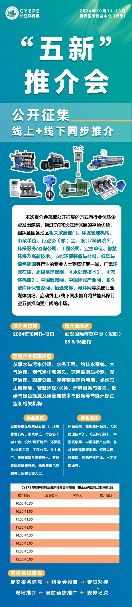 為充分發(fā)揮CYEPE長江環(huán)保展資源優(yōu)勢與平臺作用,加快培育和發(fā)展新質(zhì)生產(chǎn)力,深入推動落實湖北省人民政府鄂政發(fā)〔2023〕8號文件《關(guān)于進(jìn)一步深化制造業(yè)重點產(chǎn)業(yè)鏈鏈長制實施方案》、湖北省制造強省建設(shè)領(lǐng)導(dǎo)小組〔2023〕4號文件《湖北省加快發(fā)展節(jié)能環(huán)保產(chǎn)業(yè)三年行動方案(2023-2025年)》和湖北省民政廳2024年《共建長江經(jīng)濟(jì)帶·助力湖北先行區(qū)》文件指示要求,秉持打造長江經(jīng)濟(jì)帶節(jié)能環(huán)保產(chǎn)業(yè)一站式解決方案平臺的初心,推進(jìn)“新工藝、新技術(shù)、新產(chǎn)品、新材料和新設(shè)備”行業(yè)五新的廣泛應(yīng)用,CYEPE長江環(huán)保展組委會即日起正式啟動CYEPE節(jié)能環(huán)保行業(yè)"五新"推介會征集報名工作,致力為環(huán)保企業(yè)提供絕佳的產(chǎn)品推廣與技術(shù)交流契機,激發(fā)企業(yè)創(chuàng)新精神與市場活力,共促節(jié)能環(huán)保產(chǎn)業(yè)發(fā)展!