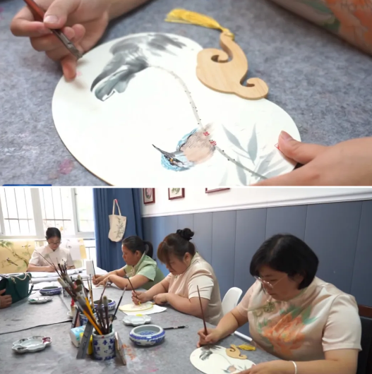 韓琴琴(右一)在東韓家村非遺手繪工坊繪畫 兩年前,韓琴琴還在為就業苦惱。恰巧,東韓家村是亞太森博(山東)的相鄰社區,2022年,為助力解決村中婦女就業困難的問題,亞太森博(山東)在該村引入了非物質文化遺產國風手繪項目。雖然沒有繪畫基礎,但抱著學習一門技藝的想法,韓琴琴第一時間就報了名。 在此之前,作為全職媽媽,韓琴琴已經七年沒有進入職場。“非常感謝亞太森博(山東)提供的學習機會,參加手繪班讓我有了重新就業的信心,如今,我已經憑借所學技能為家庭增加了收入。” 韓琴琴說。 教會一門技藝 帶動一批就業 授人以魚不如授人以漁。東韓家村非遺手繪項目聘請了專業畫師開設手繪班,教授村居婦女工筆畫、寫意畫、水彩畫和農民畫等創作技法。村民既能學習傳統文化傳承非遺手繪,又能通過學習一門技藝,拓寬就業渠道,增收致富。 亞太森博(山東)還同步在東韓家村建設了展廳和畫室,除了用作學員學習及繪畫場地外,還可以接待研學、團體實踐、單位團建等活動,助力村集體經濟發展。