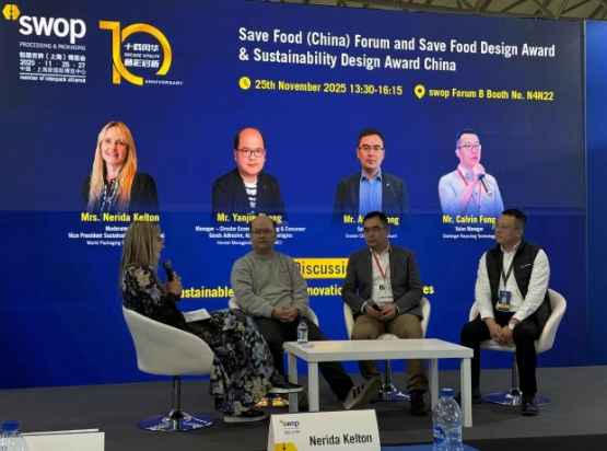 11月25日,歐洲領先的優質原生纖維紙板生產商芬林紙板亮相上海世界包裝展(SWOP 2025),大中華區銷售總監鐘淵作為嘉賓參與2025節約糧食(中國)論壇的專家討論環節,主題為“可持續包裝創新與技術”,由世界包裝組織(WPO)可持續發展與節約食品副總裁Nerida Kelton女士主持。