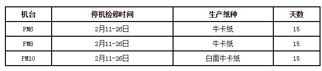 江蘇常熟理文瓦楞紙、箱板紙生產(chǎn)線春節(jié)停機(jī)檢修安排(2017-01-03)