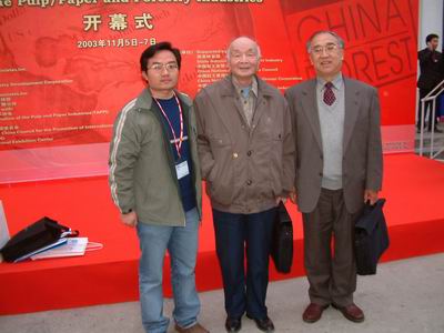 中國造紙學會理事長陳思亮及紙業前輩余貽(馬冀)老教授和景華紙業網記者合影